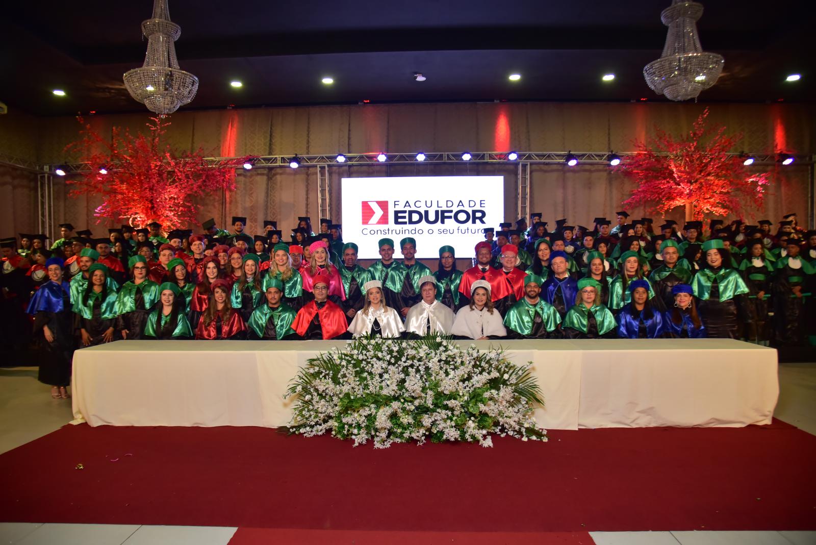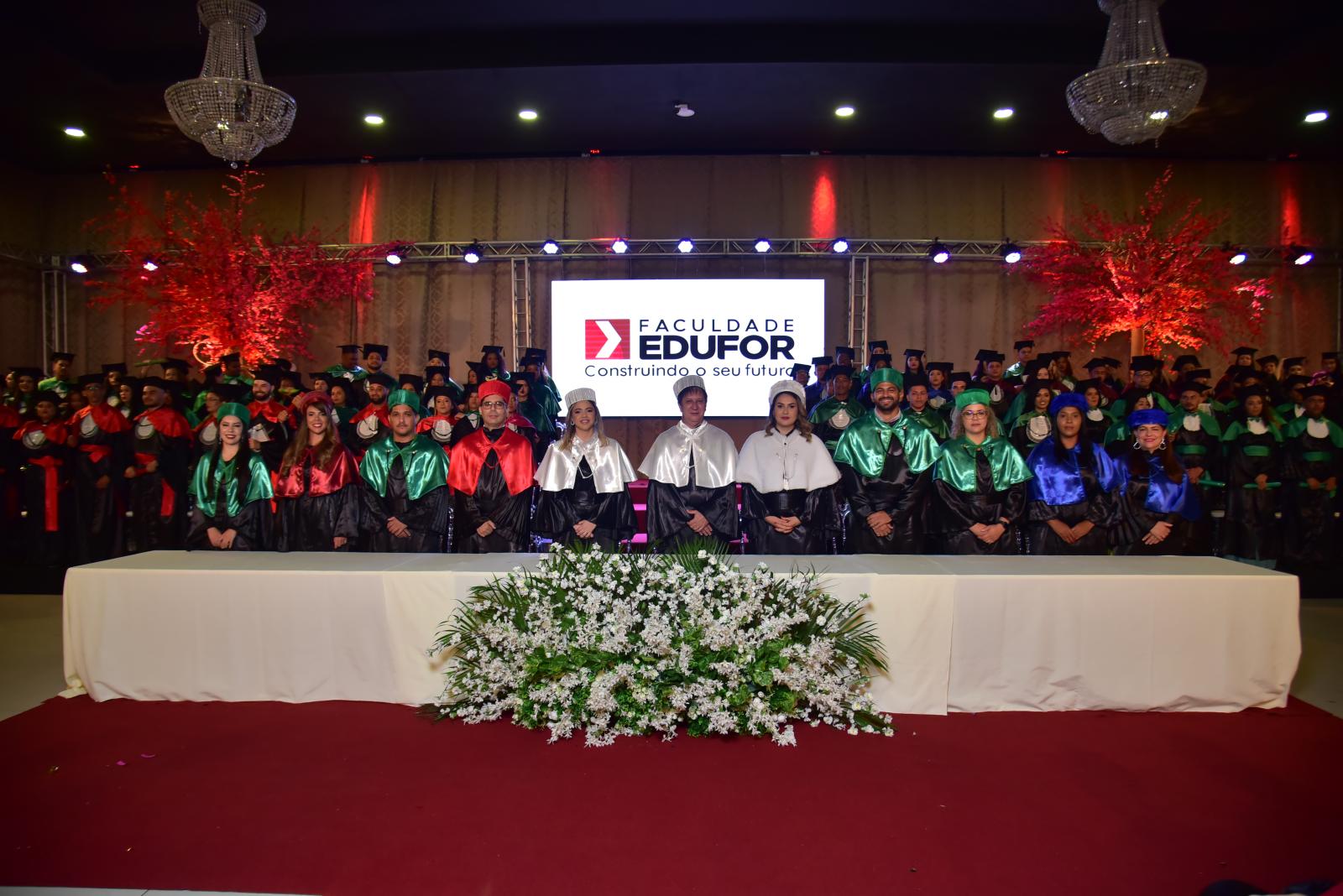 Presidida pela Diretora Acadêmica Prof.ª Caroline Castanheiras, a cerimônia contou com a presença da mesa composta por ilustres representantes da Faculdade Edufor, incluindo o Diretor Geral Prof. Malverique Neckel e a Diretora Administrativa Financeira Prof.ª Wellyssiane Neckel. Acompanhando-os, estavam os Coordenadores dos cursos de Direito, Prof. Robson Mourão; de Educação Física, Prof. Paulo Vitor Santana; de Enfermagem, Prof. Rafael Mondego; de Engenharia Civil, Prof.ª Valdilea Lopes (paraninfa); de Fisioterapia, Prof.ª Alessandra Mesquita; de Odontologia, Prof.ª Renata Campelo; e de Serviço Social, Prof.ª Enaire Sousa, além da Prof.ª Raquel Silva, representando o curso de Ciências Contábeis.