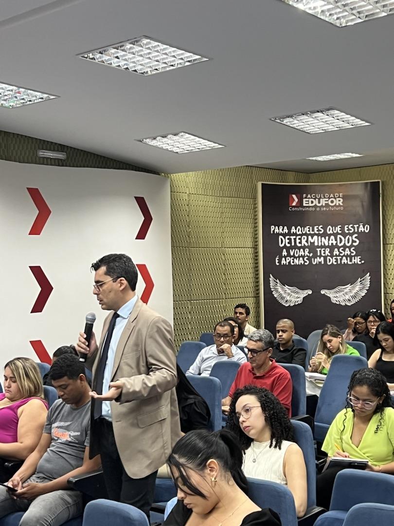 O palestrante desta sessão foi o Professor Robson Mourão, coordenador do curso de direito da Faculdade Edufor São Luís. Sua vasta experiência e conhecimento na área garantiram uma apresentação de alta qualidade, proporcionando uma visão aprofundada sobre o JECRIM.