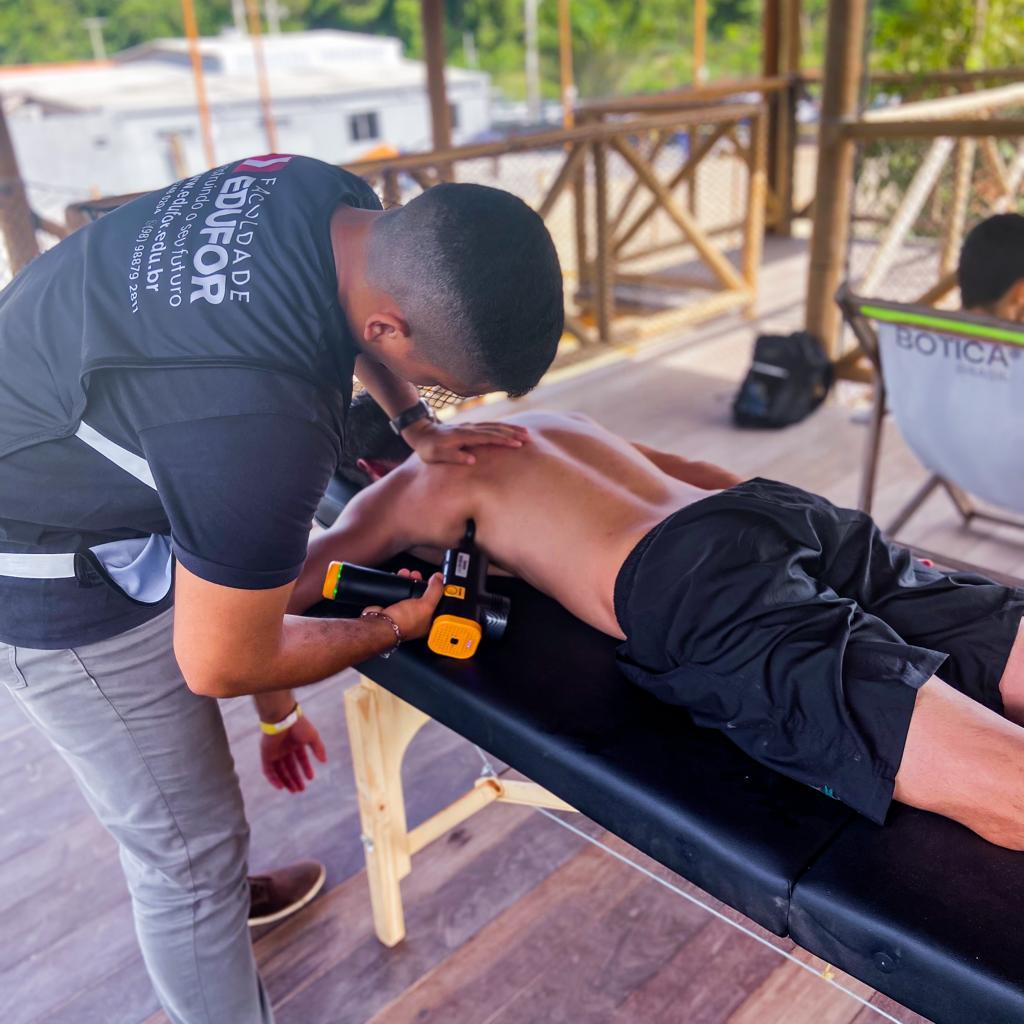 A equipe de Fisioterapia da faculdade Edufor, composta por professores, preceptores de estágio, alunos e ex alunos, desempenhou um papel fundamental durante o evento, realizado no Sport Village. Visando garantir o bem-estar dos atletas, nosso grupo esteve presente para fornecer cuidados especializados e tratamento aos competidores. Equipados com recursos de ponta, a equipe trabalhou incansavelmente para manter os atletas em sua melhor forma física ao longo do evento.